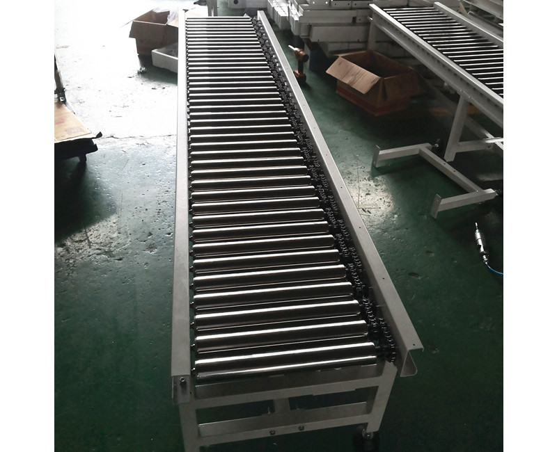 倍速鏈的輸送原理是利用倍速鏈條的增速功能,使倍速鏈條上的貨物